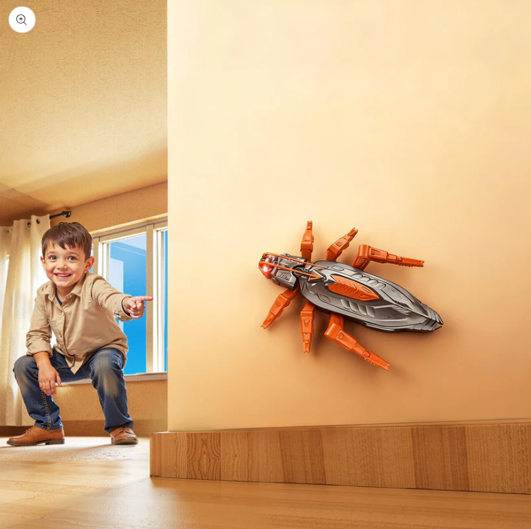 Özel vakumlu tırmanma sistemi sayesinde düz duvarlarda, cam yüzeylerde ve mobilyalarda hareket edebilen akıllı bir örümcek. Gerçekçi tasarımı, LED gözleri ve hızlı manevraları ile çocukların ilgisini anında üzerine çeker.